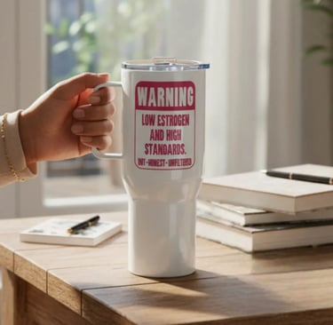 Need a bit of sassy menopause attitude to start your day? Check out our low estrogen cowgirl coffee mug!